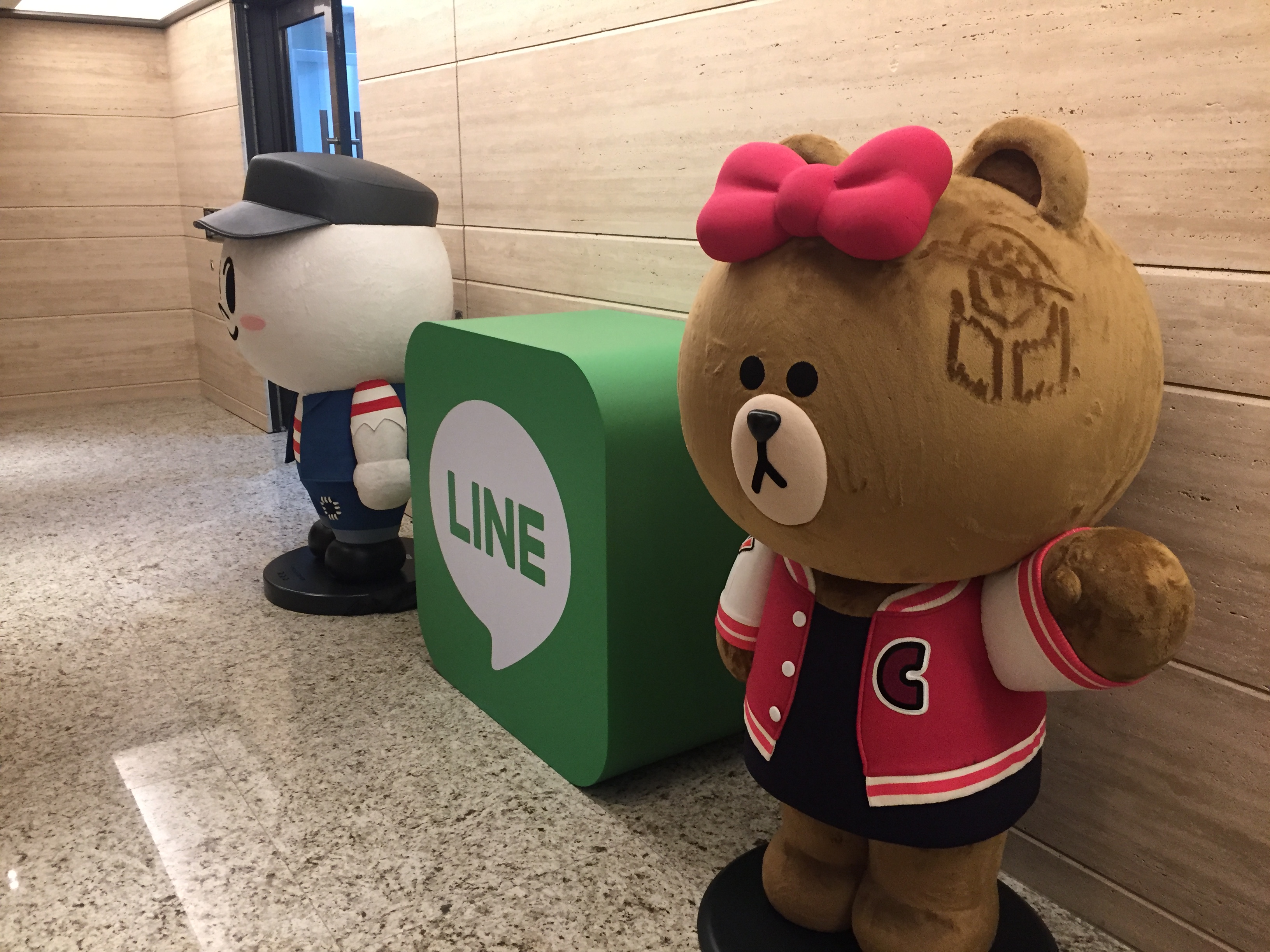 台灣 Line 總部位於台北市內湖區的辦公大樓內,接待我們的是一位資訊安全的工程師 David。David 讓我們先搭電梯去辦公大樓內的 10 樓等待,途中剛好在 4 樓門就打開了,映入眼簾的是簡約的 Line 字樣,秀在辦公室的毛玻璃上面。當時以為聽錯了,其實是要到 4 樓。後來發現原來 4 ~ 10 樓通通都是 Line 的總部,差別在於不同部門而已。